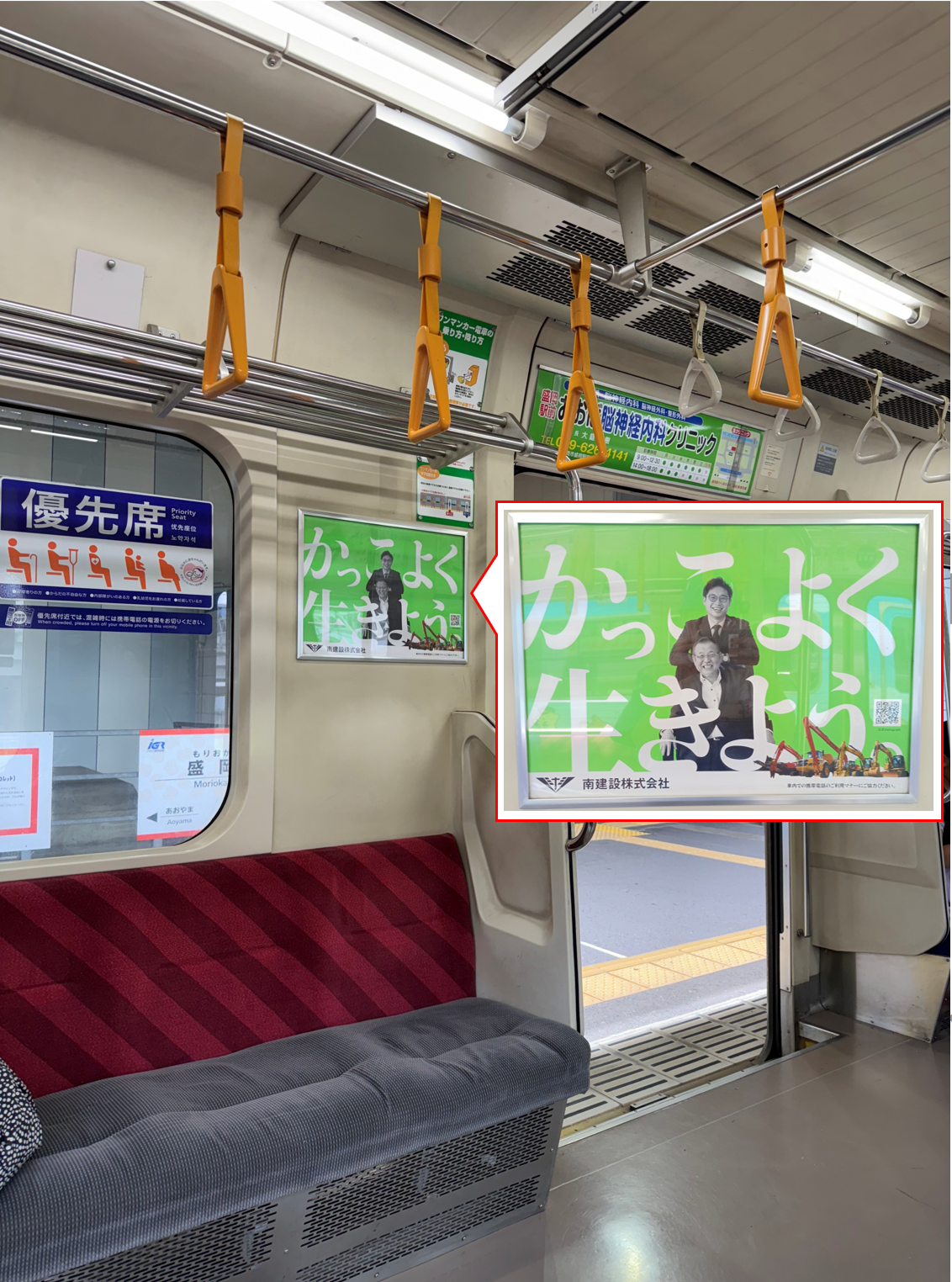 IGRいわて銀河鉄道(盛岡~金田一温泉間)車両内にて、当社の電車広告が掲載されております!