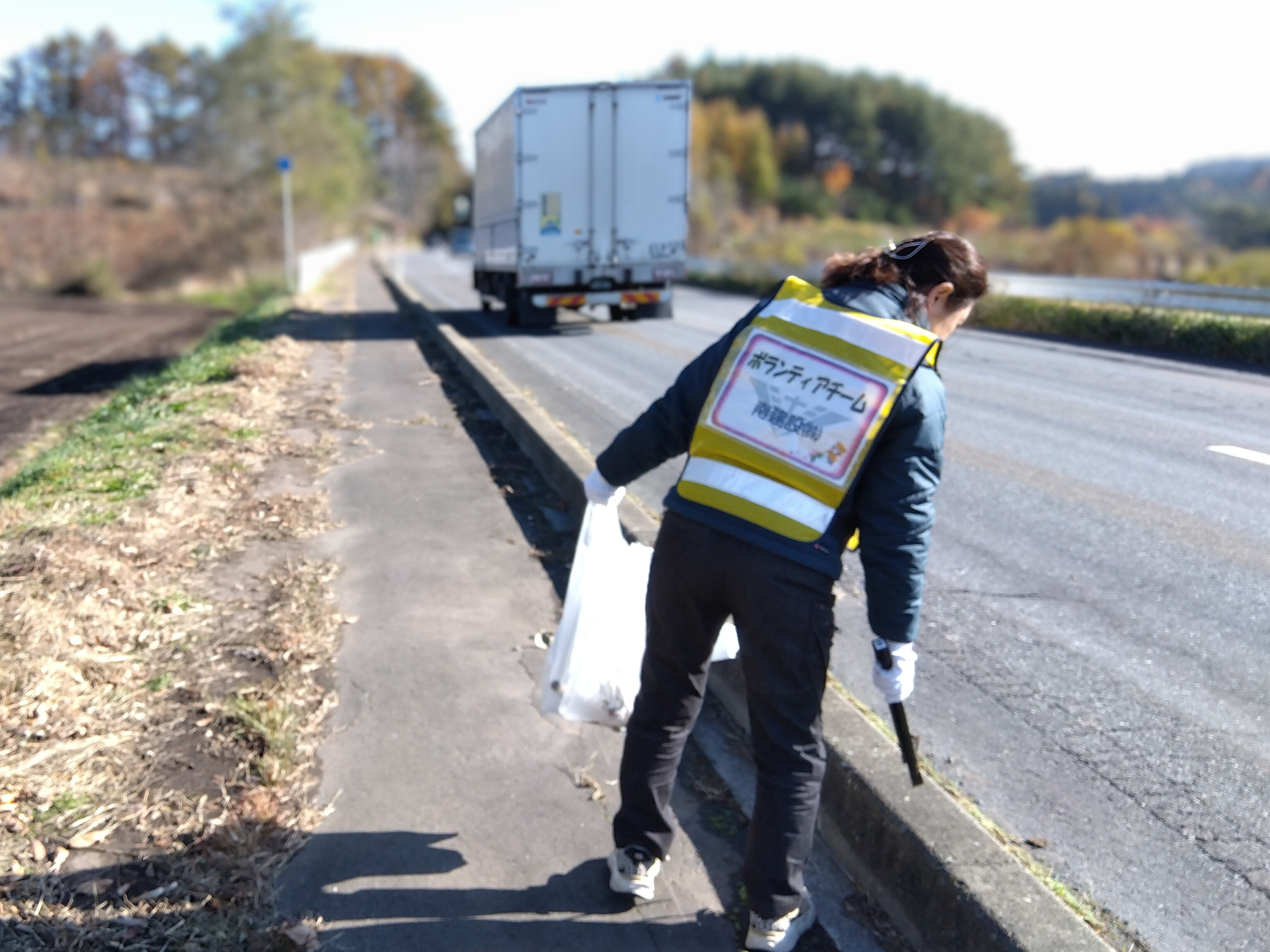秋ということで、歩道には落ち葉や枯れた草も多くありましたが、そこにゴミが埋もれていないかチェックしながら取り組みました。